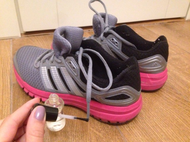 Неаккуратные кончики шнурков на обуви можно привести в порядок, используя прозрачный лак для ногтей. Просто нанесите лак на кончики шнурков.