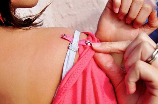 В летнюю пору мы стараемся носить легкие и свободные вещи. Нижнее белье постоянно вылазит из-под одежды и мешает? Пришейте к футболке или платью петельку с кнопкой, которая поможет зафиксировать шлейки нижнего белья.