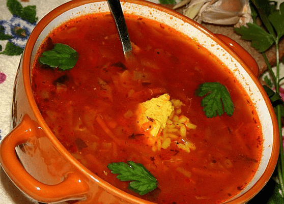 Время подошло, надо закладывать и остальные овощи. Картофель, болгарский перец и помидоры нарезать довольно крупно и отправить к бульону, не забывая посолить, и добавить разнообразные специи, довести до кипения, добавить томатную пасту, нарезанный чеснок и острый перец целиком (не разрезая его). Накрыть крышкой, уменьшить огонь на минимум, чтобы слегка кипело и варить 1 час.