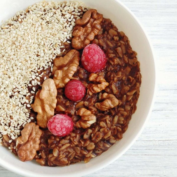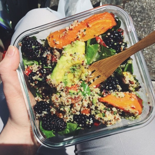 Продукты, которые содержат клетчатку, хороши еще и тем, что их можно добавлять в теплые салаты. Это – отличный способ разнообразить обед на работе. Например, прогретую в микроволновке зеленую фасоль можно смешать с кусочками теплого куриного филе, добавить немного сыра и помидоров черри – и съесть в обеденное время теплое и полезное блюдо. Заправлять холодные и теплые овощные смеси и салаты можно небольшим количеством соков без сахара или детскими пюре. Вкусно – и никаких майонезов!