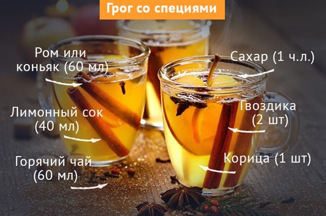 Налить в емкость воду или чай, довести до кипения. Выдавить сок из двух лимонов. Убавить огонь, тонкой струйкой влить ром, затем добавить лимонный сок и сахар, хорошо перемешать. Проварить домашний грог 2-3 минуты до полного растворения сахара, помешивая кухонной лопаткой. В конце добавить специи. Грог пьют только в горячем виде медленными глотками (можно через соломинку), чтобы не обжечь горло.