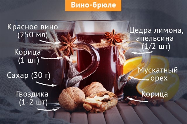 У апельсина и лимона тонко срезать цедру. В сотейник положить сахар, цедру, корицу, гвоздику, щепотку мускатного ореха. Можно добавить яблоко, без сердцевины и порезанное кружочками. Влить вино, хорошо перемешать и оставить настаиваться на 10 минут.Поставить сотейник на плиту и довести до кипения, постоянно помешивая, пока сахар полностью не растворится.Осторожно поджечь поверхность вина и дать алкоголю выпариться. Когда огонь погаснет, оставить вино на пару минут и затем пропустить через сито. Подавать горячим.