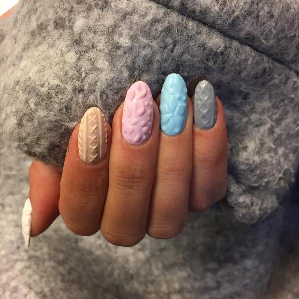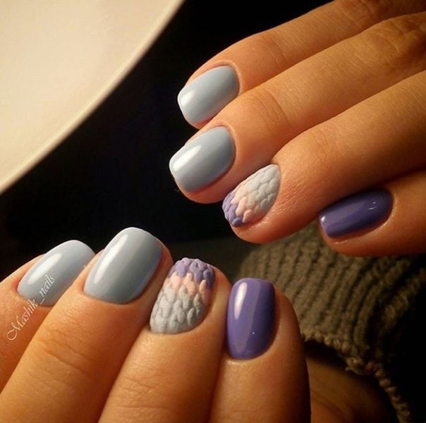 "Вязаные ногти" - последняя тенденция в маникюре. Суть его в том, что покрытие в стиле фигурной вязки идеально сочетается с теплыми и уютными зимними свитерами. Создать подобный узор можно используя обычный гель-лак. А как вам новый тренд?