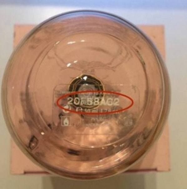 И так этот код может выглядеть на флаконе. Это серийный номер и он НЕ ДОЛЖЕН СТИРАТЬСЯ. Проверить это легко — просто настойчиво потрите пальцем это место.