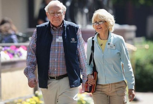 Пожилая дама на фото – Астрид Менкс, супруга 85-летнего американского предпринимателя Уоррена Баффета (состояние – 72,7 млрд долларов). Седой мужчина в очках на том же снимке – сам Баффет.