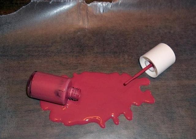Разлейте лак на вощеную бумагу. Когда засохнет - аккуратно очистите полученное «пятно» от бумаги. (Лучше использовать быстросохнущий лак, ускорить подсыхание можно феном). Потом эту лаковую нашлепку можно вместе с бутылочкой от лака положить куда угодно: хоть на новую рубашку мужа, хоть на важный документ жены.