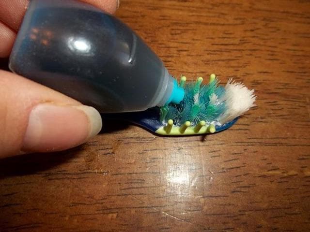 Пищевой синий краситель на зубную щетку - классика.