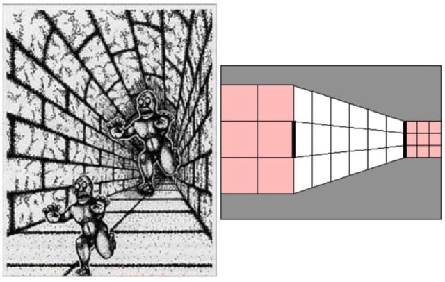 Иллюзия вызвана явлением линейной перспективы, существующей, потому что мы видим мир в трёх измерениях. Если две линии сходятся (например, как стены на изображениях выше), наш мозг считает, что они параллельные, но уходящие вдаль. По сути, это то же самое, что смотреть на рельсы, стоя между ними. Вам покажется, что где-то вдали они сходятся, хотя на самом деле они строго параллельны.