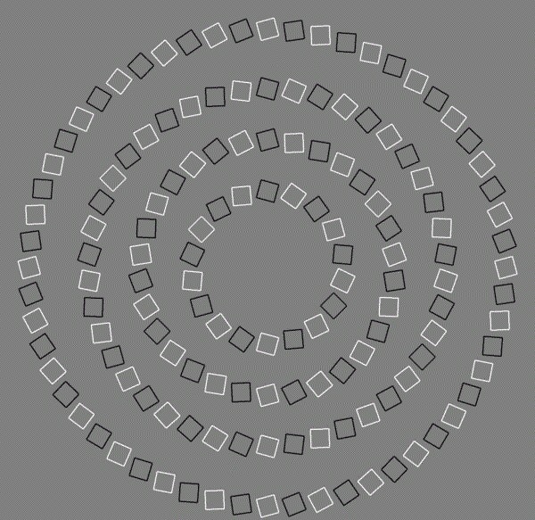 На картинке выше ничего не движется. Это вовсе не анимация и не видео! Просто при взгляде на неё вам кажется, будто отдельные фрагменты картинки перемещаются. К сожалению, учёные до сих пор не знают, что заставляет нас испытывать эту иллюзию движения.