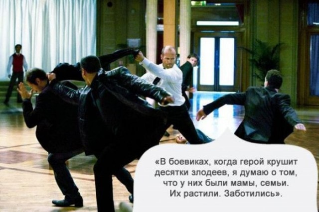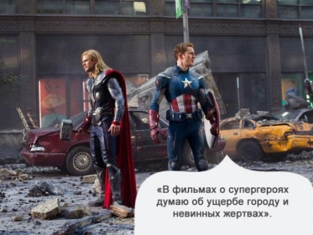 Каждому из нас знакомы посторонние мысли, которые возникают во время просмотра любого фильма. В момент захватывающей сцены мы можем задуматься о том, что совершенно неважно в данный момент. Далее вас ждут 14 подобных мыслей, после прочтения которых вы будете смотреть фильмы по-другому:)