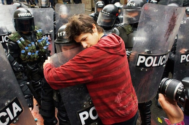 Во время протестов. Они не виноваты, они просто выполняют приказы