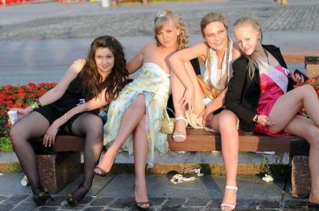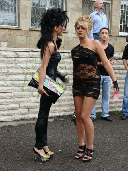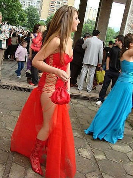 Ай, мои глаза, мои глаза! Это больше уже похоже не на выпускной вечер, а на ярмарку тщеславия. С другой стороны, как говорят в народе: мило-не мило, а денежки платила, или иными словами видели глазоньки, что покупали (шили, одалживали). Возможно, кто-то именно так и хотел выглядеть на таком важном событии, чтобы врезаться в память.