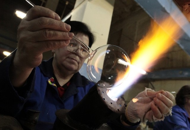 Технология изготовления шаров изменилась уже после 1867 года, когда на территории города был открыт газовый завод. Применение газовых горелок в стеклодувном производстве дало возможность разогревания стекольной массы до довольно высоких температур, благодаря чему стало возможным изготовление елочных шариков из тонкого стекла, они было намного легче предыдущих, и гораздо меньше отягощали ветки рождественского дерева своим весом. Свинцовое покрытие, способное причинить вред здоровью, на шарики больше не наносилось, а зеркальный блеск придавался при помощи нитрата серебра. Пластичное стекло стало применяться не только для выпуска блестящих шаров, из него можно было выдувать елочные игрушки любой формы и размеров – гроздья винограда, животных и птиц, фигурки Санта Клауса и маленьких ангелочков, рыбок, которые в христианстве отождествляются с Иисусом Христом, а также небольшие амфоры и разнообразные кувшинчики.