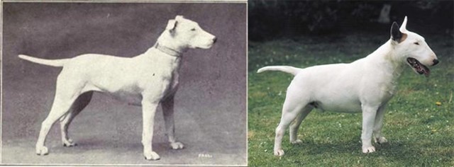 1. Бультерьер был красивой спортивной собакой. Без уродливой морды и отвислого живота. Новая форма черепа привела к появлению проблем с зубами и прогрессирующей глухоте. Кроме того, у собаки врожденный вывих локтя и частые солнечные ожоги.