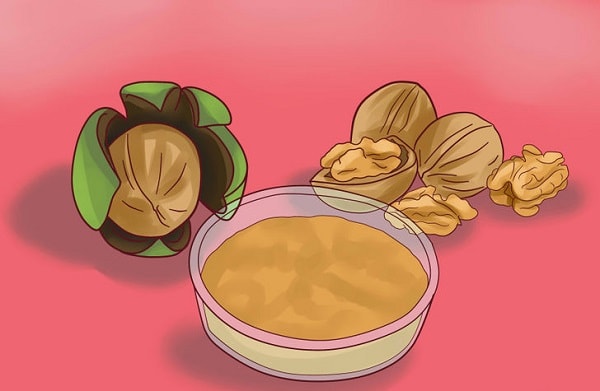 Зеленую кожуру от 15–20 грецких орехов измельчи. Залей горячей водой так, чтобы она покрыла очистки полностью. Дай средству немного настояться.