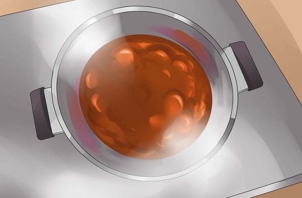 Кисточку для покраски смочи в полученной жидкости и, прокрашивая прядь за прядью, распредели всё средство по волосам. Подержи 15–20 минут, смой водой и ополосни раствором яблочного уксуса.